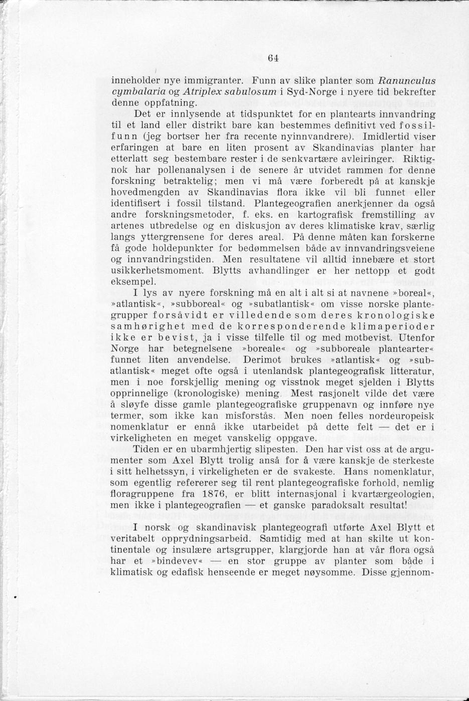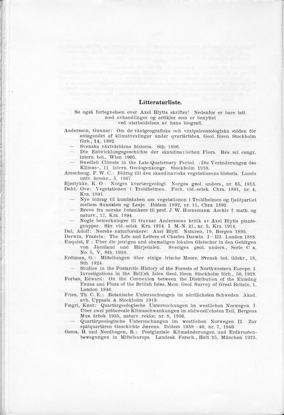 Tillegg og rettelser. Rolf Nordhagen. Axel Blytt. Blyttia 1: 104.