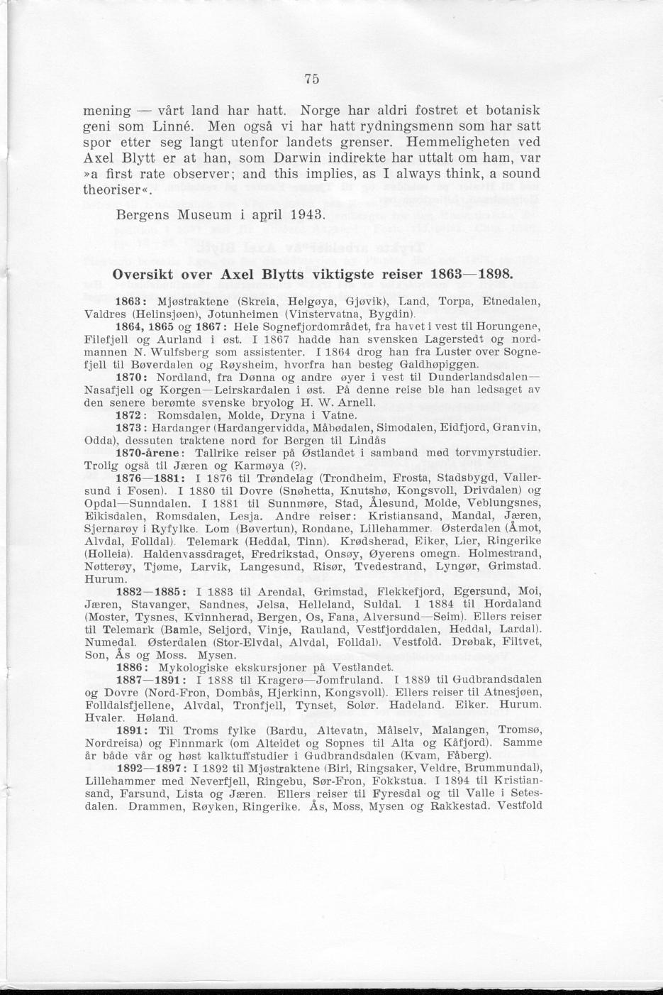 1943. Minner fra Axel Blytts forelesninger og botaniske ekskursjoner.