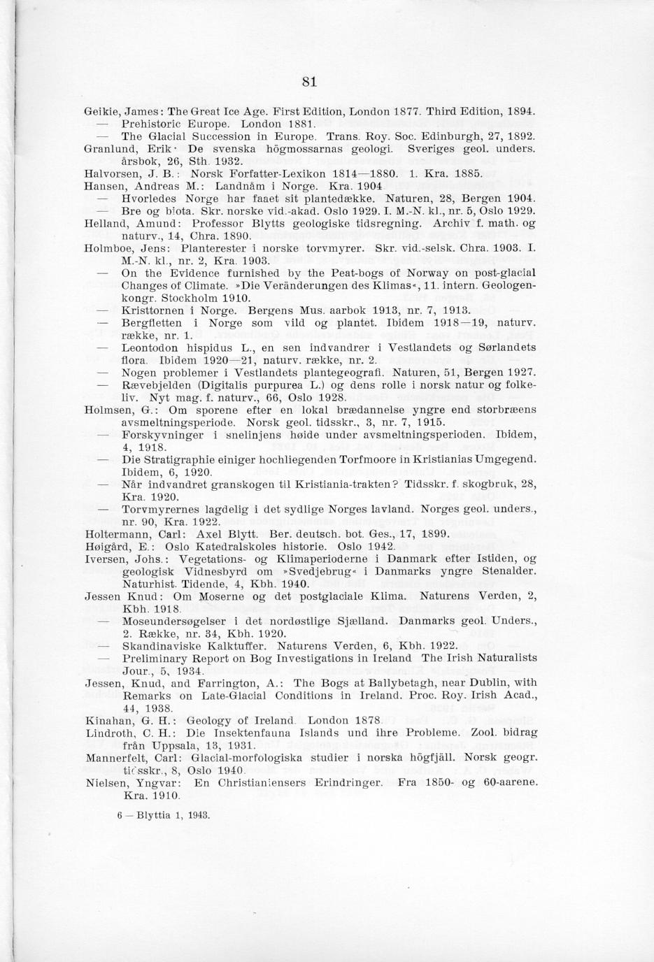 1943. Jens Holmboe (1880-1943). Blyttia 1: 105-113.