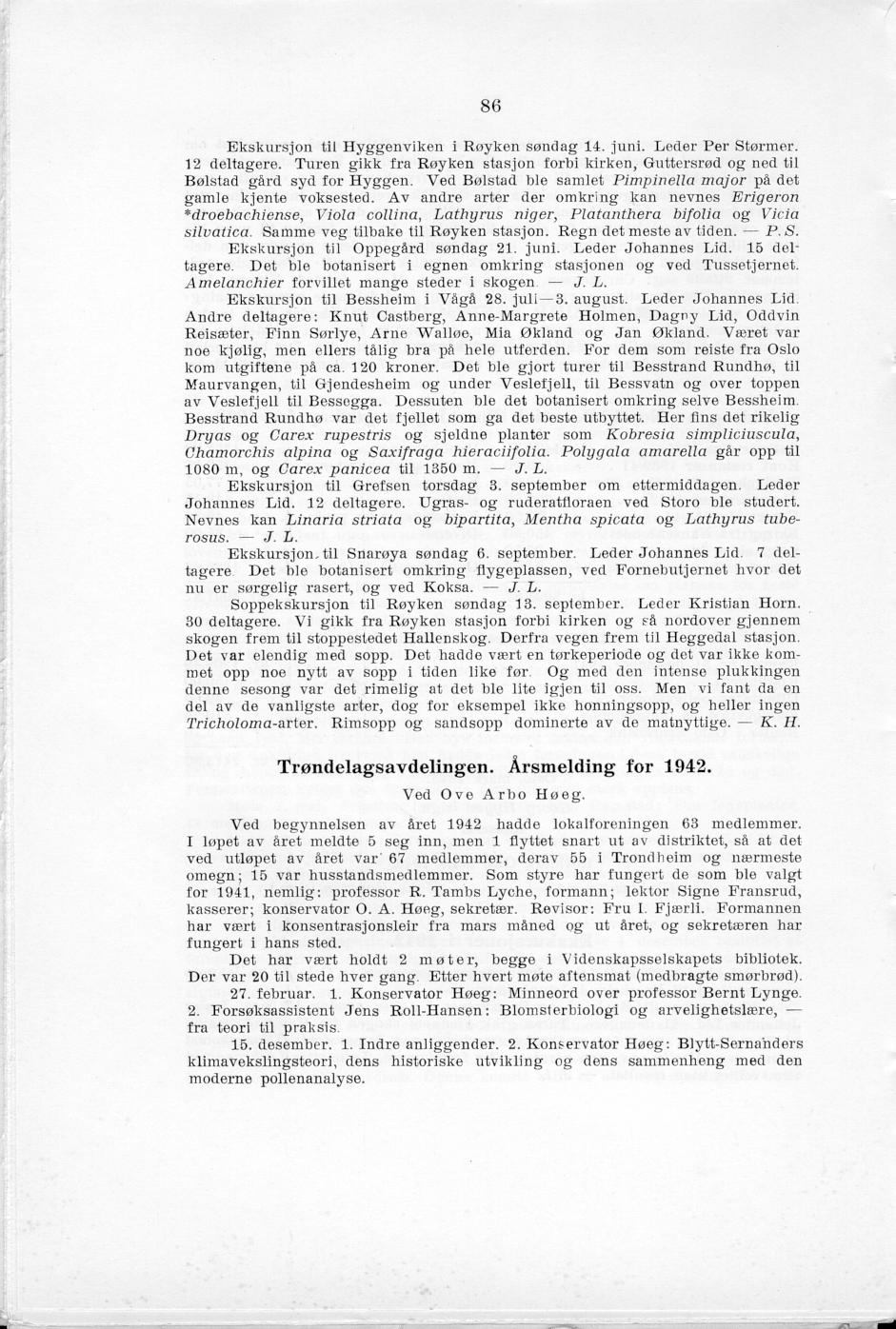 Ekskursjoner i 1942. Blyttia 1: 85-86.