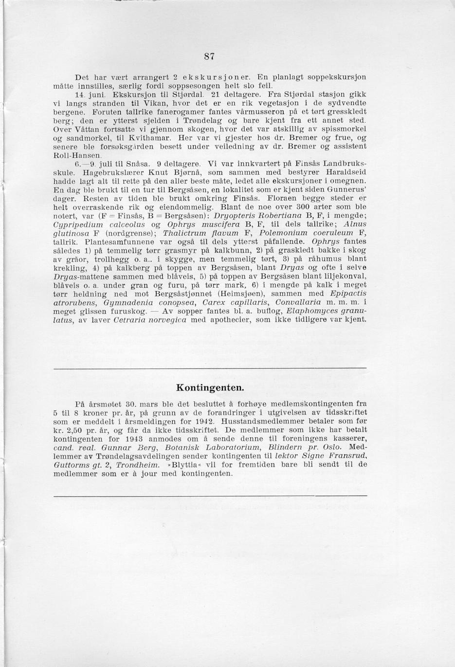 (anon.) 1943. Kontingenten. Blyttia 1: 87.
